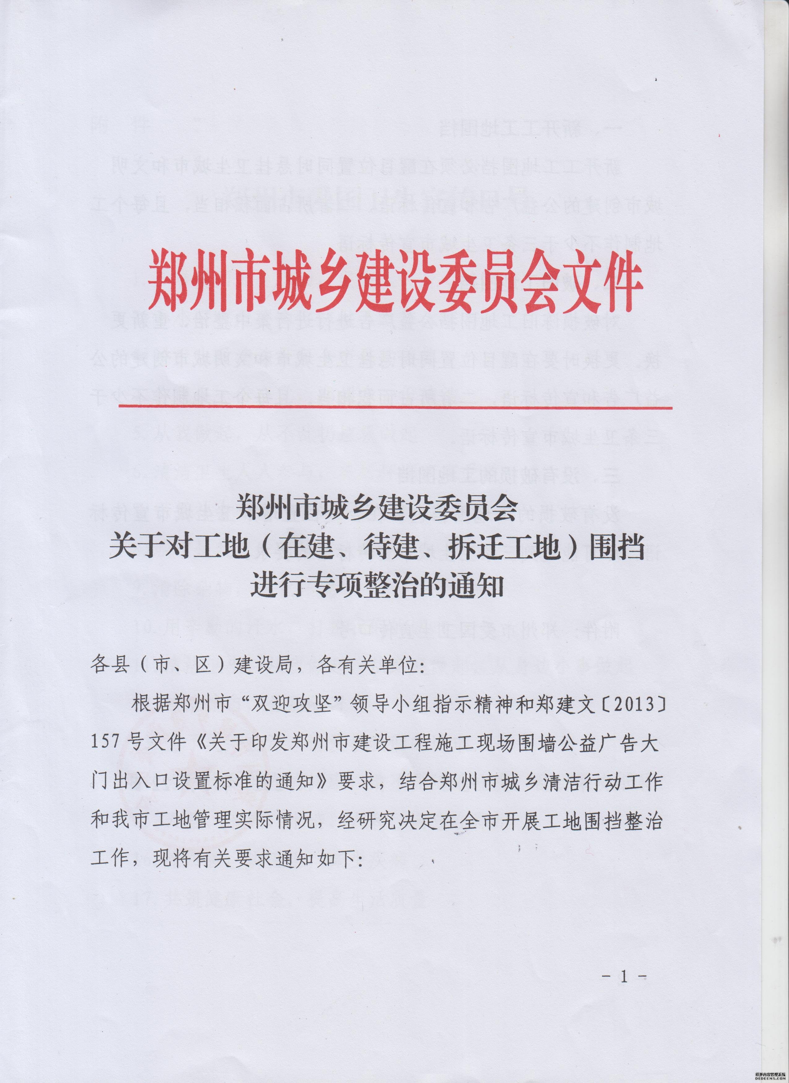 鄭州市城鄉(xiāng)建設委員會關(guān)于對工地(在建、待建、拆遷工地)圍擋進行專項整治的通知